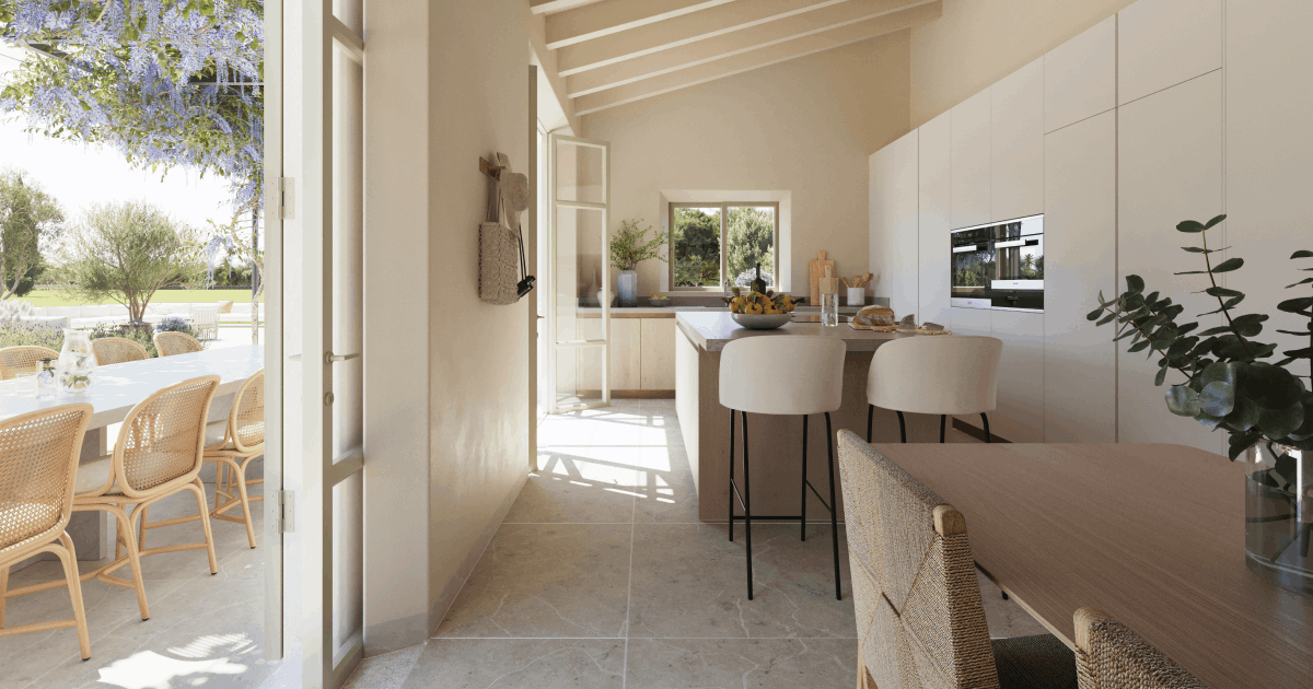 ES VINYET, materiales naturales para reforzar la tradición local, buscando una vivienda de tono rústico pero moderno con vistas a la Serra de Tramuntana.